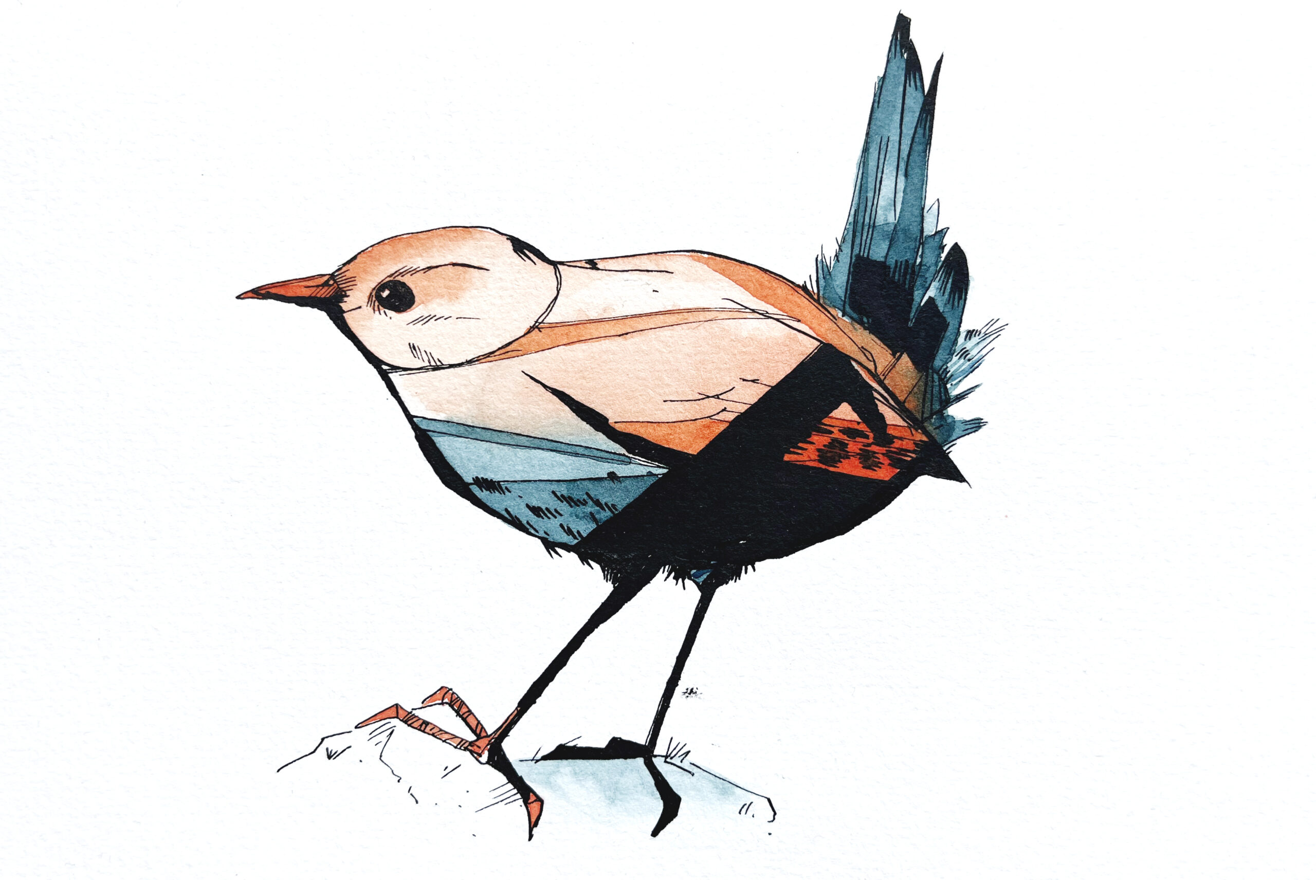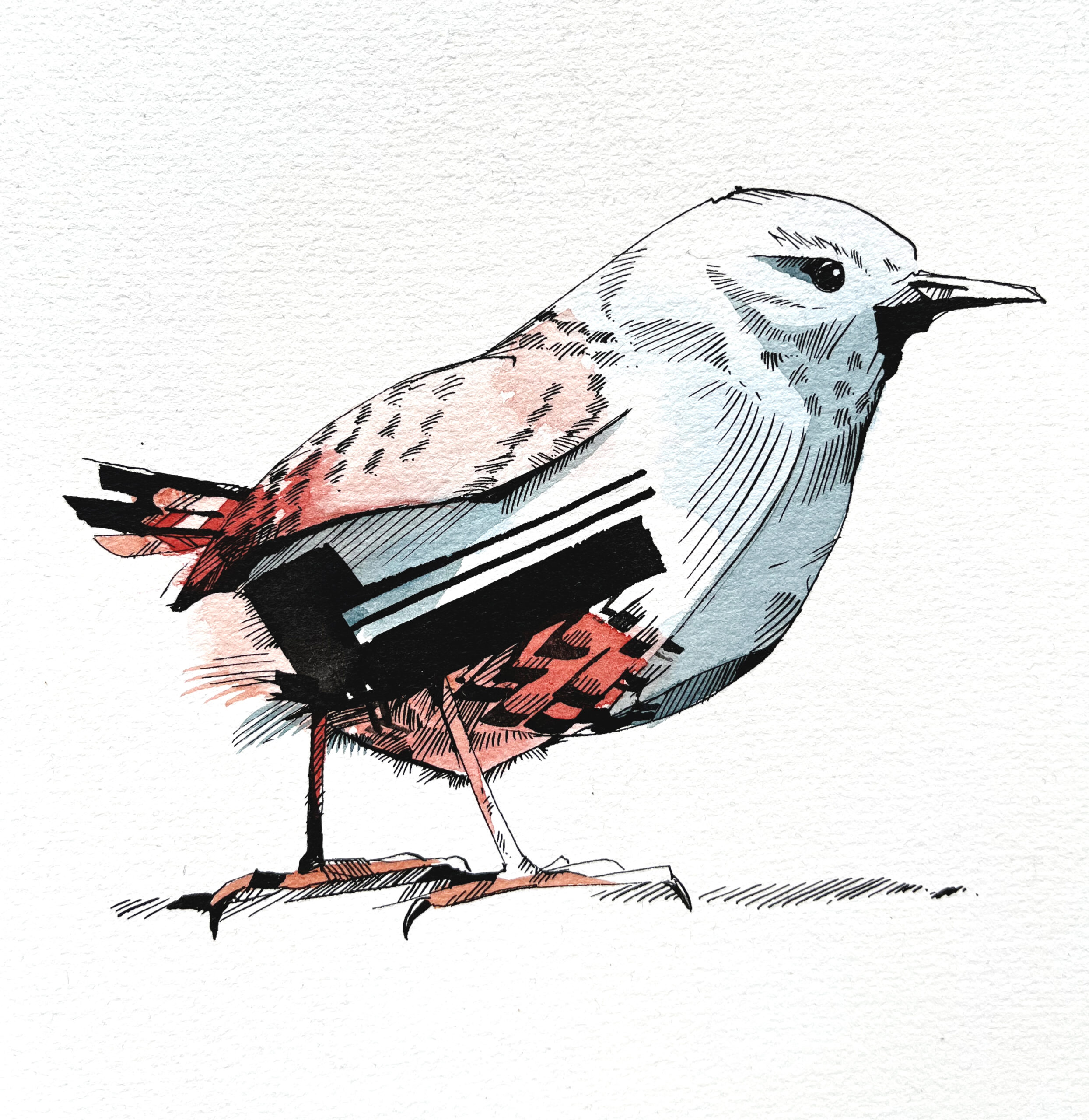 The variations I make of it are more or less faithful to its basic form, but there are some characteristic elements, such as the tail, the details of the wings and the shape of the beak. I discovered this species using a mobile application I particularly like, which recognizes the songs of surrounding birds, and finds the associated species. A very useful tool for spotting birds in the area that I’m not familiar with.